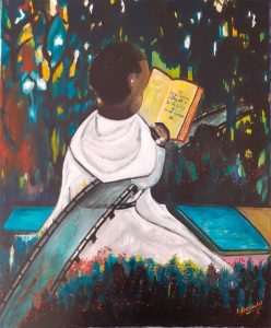 Grégoire Abessolo Amougou est un prêtre dominicain, artiste peintre camerounais, vivant à Paris. Dans son atelier d’art « Kristus Nti Beti », ouvert à Yaoundé en 2014 et comportant trois thèmes « Nature, Développement, Foi » , il a initié une quinzaine de jeunes au dessin et à la peinture. Il s’est inspiré de la création rythmique et du symbolisme religieux. Son ambition est de développer KOBA’ANNA, une méthode de peinture artistique inspirée de la continuité tradition – modernité.